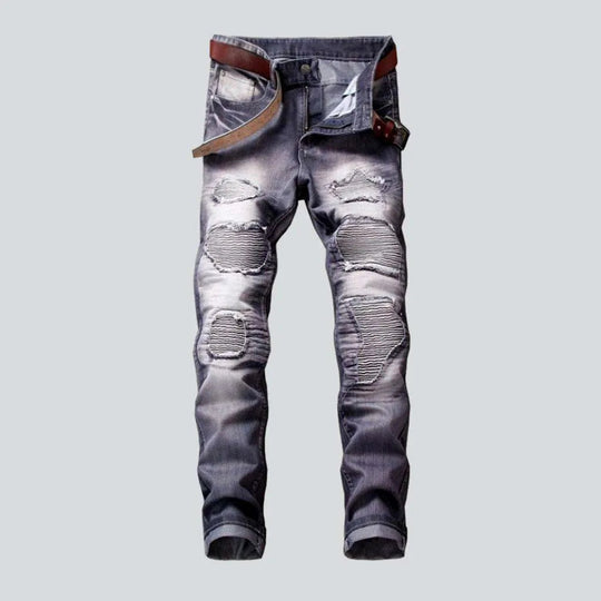 Wrinkled patchwork grey men's jeans