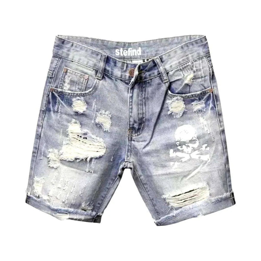 Skull print ripped denim shorts | Jeans4you.shop