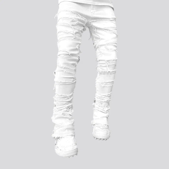 White crystal patchwork men's jeans
