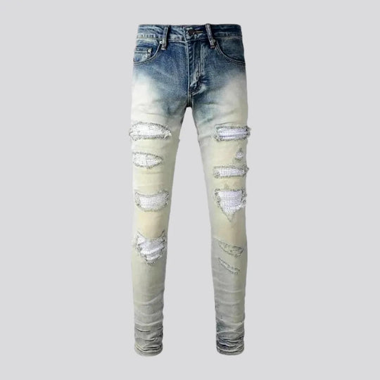 Cracked patch skinny men's jeans